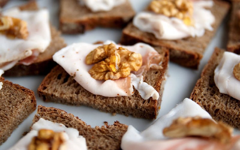 Bruschette rustiche e sfiziose con lardo, miele e noci