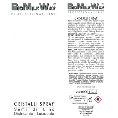 Spray lustrant - démêlant. Spécifique pour les cheveux ternes, ternes et cassants, car il améliore leur structure, les rendant doux et brillants. Enrichi en huile de lin, provitamine B5 et filtre solaire, il rend les cheveux brillants et soyeux.Excellent démêlant pour les cheveux : crépus - secs - longs.