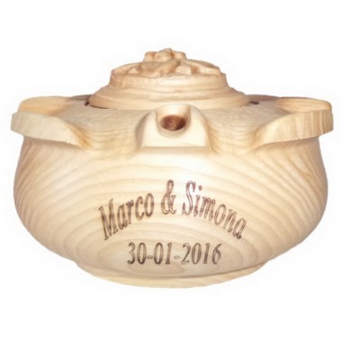 Le tue bomboniere realizzate in legno di frassino dagli artigiani valdostani, coppa dell'amicizia personalizzata con i nomi degli sposi e la data della cerimonia (come da foto).