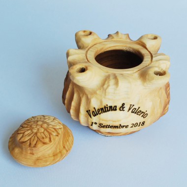 Le tue bomboniere realizzate in legno di frassino dagli artigiani valdostani, coppa dell'amicizia personalizzata con i nomi degli sposi e la data della cerimonia (come da foto).