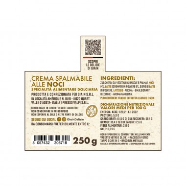 La Crema Spalmabile alle Noci Gain è una specialità dolciaria cremosa e dal gusto intenso, realizzata con 14% di noci selezionate e ingredienti di qualità. Perfetta da spalmare su pane, brioche e fette biscottate, è ideale anche per farcire dolci e dessert.